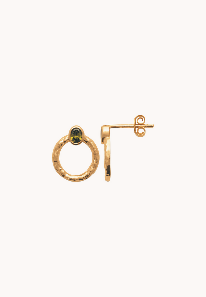In der Mitte jedes Ohrrings befindet sich ein Zirkonia-Stein in Olivgrün, Weiß oder Blau, der für einen Hauch von Grün sorgt und die Ruhe der Natur heraufbeschwört. Die 3-Mikron-18-Karat-Goldbeschichtung sorgt für ein prächtiges Finish und lange Haltbarkeit, sodass Sie diese Juwelen viele Jahre lang schätzen werden.